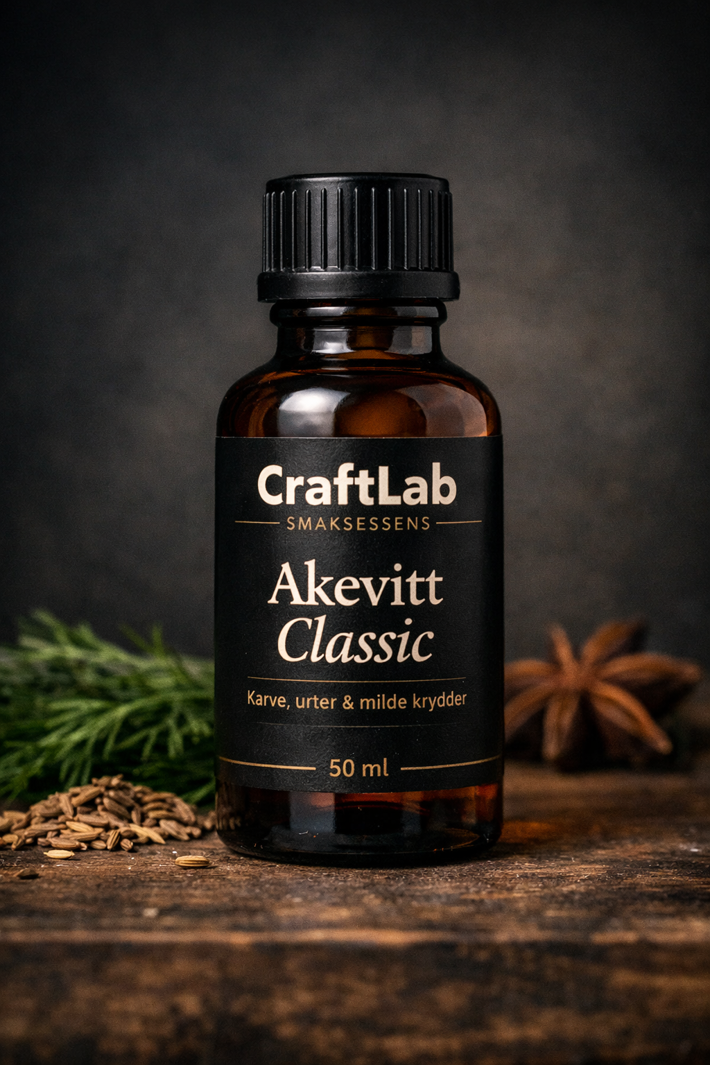 Smaksessens inspirert av klassisk akevitt med tydelege tonar av karve, urter og milde krydder.