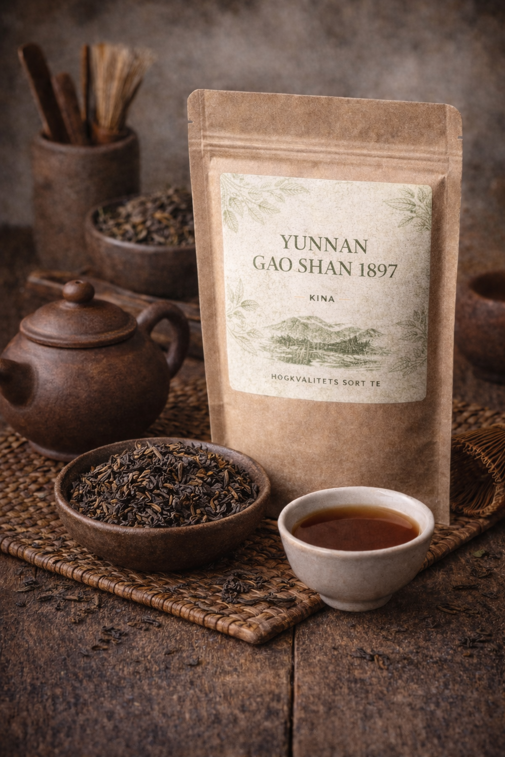 Yunnan Gao Shan 1897 er ein moden shu pu-erh frå høglandet i Yunnan, laga av blad frå gamle tebuskar og pressa i små mini-cakes. Teen er rikt modna og gir ein djup mørkeraud kopp med rund og svært mjuk karakter.